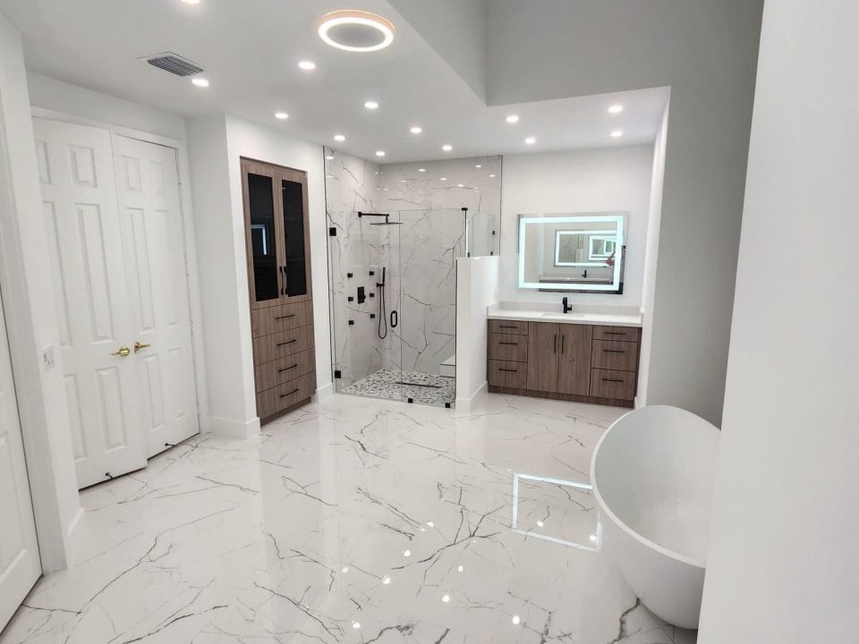 Let your imagination run wild—describe the bathroom of your dreams, and we’ll make it a reality. From the very beginning, we’re with you every step of the way, helping you choose the right materials if you’d like our guidance. Once your selections are made, we bring your vision to life, creating fully functional spaces with everything you need to feel comfortable and at ease. Get in touch with our team for more information or to schedule a visit and receive a free estimate.